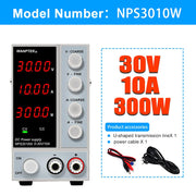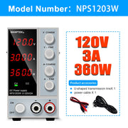 Four-Digit Display (0.01V/0.001A): 5. NPS306W: 30V 6A, 180W output 6. NPS3010W: 30V 10A, 300W output 7. NPS605W: 60V 5A, 300W output 8. NPS1203W: 120V 3A, 360W output