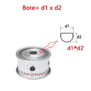 D Hole 2GT GT2 Timing Pulley Synchronous Wheel - AF Type, 20-28 Teeth, 2mm Pitch