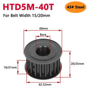 HTD5M 40 Teeth 45# Steel Timing Pulley – HTD 5M 40T Synchronous Wheel