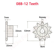 12/24 Teeth 08B Industrial Drive Sprocket Wheel - 45# Steel Chain Gear