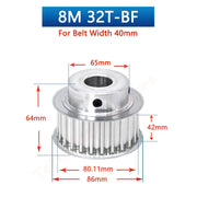 1pc 32 Zähne 8M Timing Pulley 32T HTD8M Synchronus Pulley Nut Bohrung