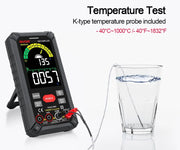 • Temperature Measurement with included K-type probe, measuring from -40°C to 1000°C (-40°F to 1832°F).