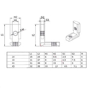 Modelo: Serie 20 adecuada para su uso en perfiles de aluminio estándar europeo con ranura de 6 mm Modelo: Serie 30 adecuada para su uso en perfiles de aluminio estándar europeo con ranura de 8 mm Modelo: La serie 40 es adecuada para su uso en perfiles de aluminio estándar europeo con ranura de 8 mm Modelo: Serie 45 es adecuada para su uso en perfiles de aluminio estándar europeo con ranura de 8 mm Ranura de perfiles de aluminio estándar europeo.