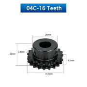 1 pieza 16 17 18 dientes 04C 25H piñón de doble fila para cadena de rodillos 16T