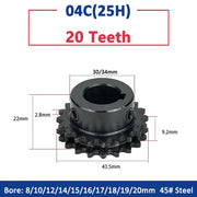 1 piñón de doble fila de 20 dientes 04C 25H para cadena de rodillos 20T 45#
