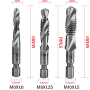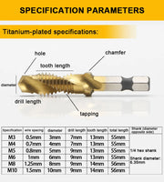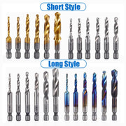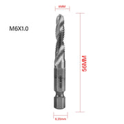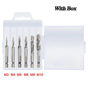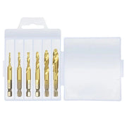 Juego de brocas para grifo, vástago hexagonal, rosca de tornillo HSS chapada en titanio, 1/6 Uds.