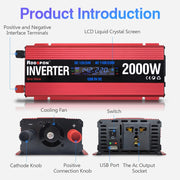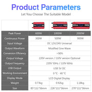 Inverter 12V to 220V, Modified Sine Wave Inverter, Car Inverter, Power Inverter with USB, 1000W Inverter, 12V/24V to 110V, 2000W Peak Power Inverter.