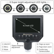 Microscopio digital 600X 4,3 pulgadas de vídeo electrónico portátil 1080P