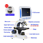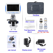 Microscopio con pantalla LCD de 7 pulgadas, zoom de 2000X, Digital, HD, Coaxial, ajuste, laboratorio biológico, led, bolso de lujo, 7 Uds.