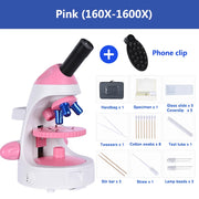 Microscopio biológico Monocular HD Zoom 1600X laboratorio Lad estudiante educación LED + bolso de lujo + soporte para teléfono + accesorios 9CPS