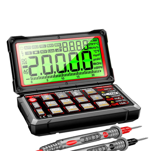 Ver todos los detalles623 Digital Car Multimeter – 20000 Counts True RMS, AC/DC 1000V, 10A, RPM & Dwell, Pulse Width (ms), Duty Cycle, NCV, Capacitance, Temperature, Rechargeable