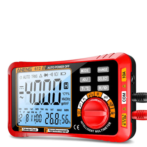 Ver todos los detalles612 Smart Digital Multimeter (3-in-1) – 4000 Count AC/DC 600V, 10A, Capacitance 40mF, Frequency, Temperature, Humidity, Backlight, 16-in-1 Leads