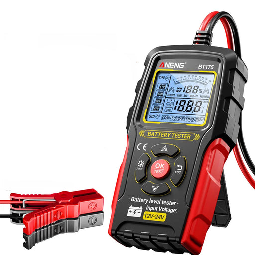 Ver todos los detallesBT175 Car Battery Tester – 12V/24V Lead-Acid Battery Analyzer (8–36V) with CCA, Internal Resistance, SOC/SOH, Alternator/Charging Check, Insulated Alligator Clips