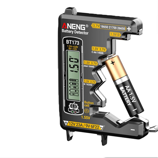 Ver todos los detallesBT173 Universal Battery Tester – AA AAA C D N 9V and Button Cell Battery Meter with LCD Level Display