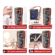 • Dual Functionality: Combines a digital multimeter and an oscilloscope, allowing for comprehensive electrical measurements.