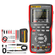 Digital oscilloscope, multimeter, 10 MHz bandwidth, 48MS/s sampling rate, waveform storage, handheld oscilloscope, 9999-count multimeter, rechargeable, electrical measurement tool.