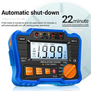 The ANENG MH10 Digital Megohmmeter is a compact, electronically controlled instrument designed to test insulation resistance in various electrical equipment and insulating materials such as transformers, motors, cables, and switches. It offers four rated test voltages (100V, 250V, 500V, 1000V) and can measure AC voltage up to 750V. This tool is ideal for maintenance, repair, testing, and verification of electrical equipment, featuring a robust load capacity and high-pressure indication for safe operation.