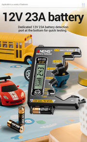 BT173 Universal Battery Tester – AA AAA C D N 9V and Button Cell Battery Meter with LCD Level Display