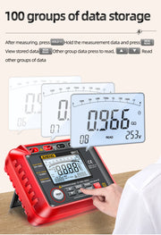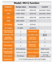 MH12 Digital Megohmmeter – Insulation Resistance Tester (50V/100V/250V/500V/1000V) with AC/DC Voltmeter, PI, Auto Discharge, Data Storage