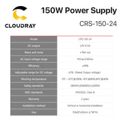 Fuente de alimentación conmutada Cloudray CRS-150 24V 150W 6.5A Alimentación conmutada