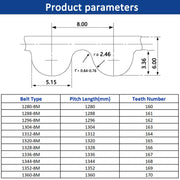 Tipo de correa: correa síncrona de bucle cerrado de goma con correa de distribución HTD 8M