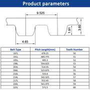 Modelo de correa de distribución L = Longitud en pulgadas, Circunferencia = Modelo * 2,54 (Los modelos individuales pueden tener desviaciones)