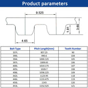 • Modelo de correa de distribución L = Longitud en pulgadas, Circunferencia = Modelo * 2,54 (Los modelos individuales pueden tener desviaciones)
