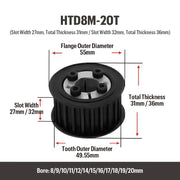 HTD 8M Timing Pulley (18–22 Teeth) – Steel, 8–20mm Bore, for 25/30mm Belt