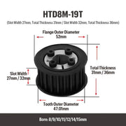 Due to manufacturing batch variations, the flange size of the pulley may differ by 2–3 mm. This does not affect performance or compatibility and allows sufficient installation clearance.
