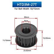HTD3M 26T-29T Negro 45# Polea de sincronización de acero HTD-3M 26 27 28 29