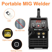 Keywords: HBM1200 welding machine, MIG welder, TIG welder, ARC welder, multi-function welder, gas-less welding, portable welding machine, dual voltage welder.