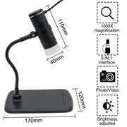 Microscopio digital USB 1000X con lámpara LED de 8 soportes tipo C Android PC