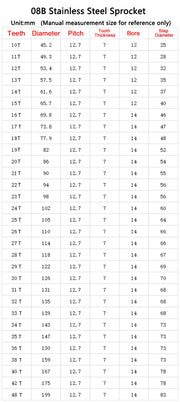 1 rueda dentada 08B 18/19/20/21/22/23/24/25/26/27/28/29/30/32/36/42