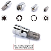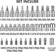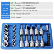 34/29 Pieces Torx Bit Socket and E-Torx Star Socket Set 1/4" 3/8" 1/2"