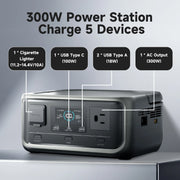 Designed for camping, RV travel, remote work, CPAP backup and emergency home power, the P300 delivers stable AC output, fast USB-C charging and reliable UPS protection.