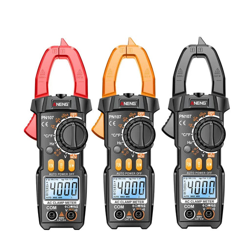 PN107 Digital Clamp Meter – 600A AC Current Clamp, AC/DC Voltage 600V, Resistance, Capacitance, Frequency, Temperature, NCV, Backlight & Flashlight