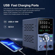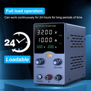 Multiple integrated protection systems help protect both the power supply and connected equipment by preventing overvoltage, overcurrent, overheating, overpower, and short-circuit faults. Intelligent temperature-controlled cooling activates only when necessary, reducing noise while extending component lifespan. With continuously adjustable output parameters and dual input voltage support, this laboratory power supply is suitable for production testing, anodizing processes, electronics servicing, battery charging, research labs, education, and DIY electronics projects.