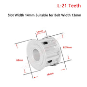 • Slot Width: 14 mm / 21 mm, suitable for timing belt widths of 13 mm / 20 mm.