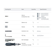 Ideal for use in furniture assembly, automotive repairs, equipment maintenance, and household DIY projects. The mini flashlight is perfect for working in dark or confined spaces, providing additional visibility for precision tasks.